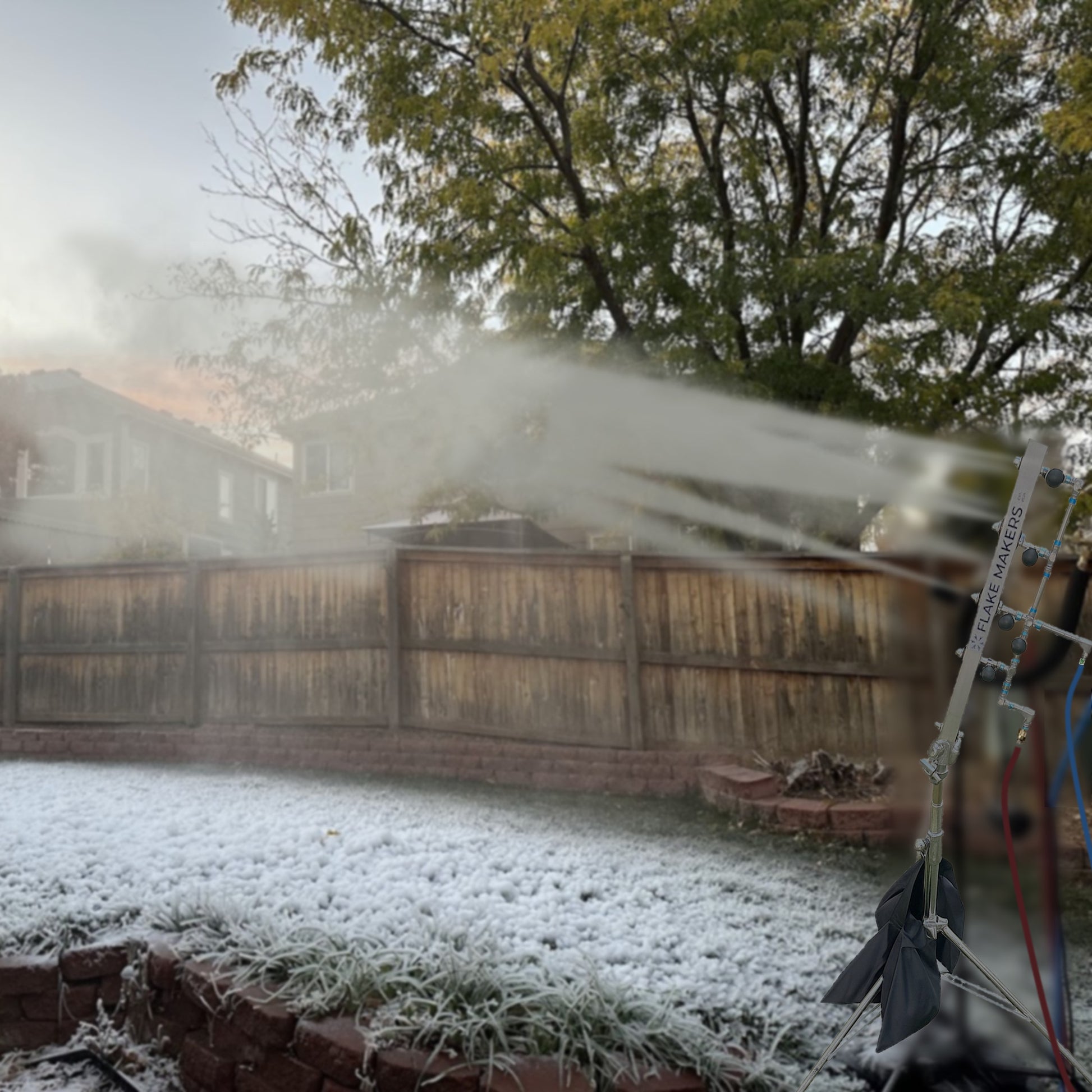 Flake Makers’ snow maker, paired with your compressor and pressure washer, easily creates professional-grade snow for ski resorts, backyards, sledding hills, or winter events in any winter weather.